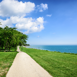 Lighthouse Beach, 2611Sheridan Road, One of Evanston’s most iconic spots, Lighthouse Beach is named after the historic Grosse Point Lighthouse, which overlooks Lake Michigan. This beach is extremely popular among Evanston residents, as many find it to be the perfect spot to relax. It has a roll-out Mobi-Mat to enhance accessibility and a nearby park has an accessible playground.