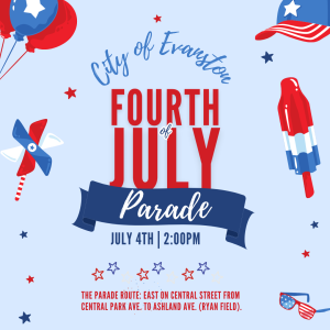 - At 2 p.m., the beloved Evanston Fourth of July Parade marches east along Central Street, beginning at Central Park Avenue and ending at Ashland Avenue near Ryan Field. This award-winning parade reflects this year’s theme — “Truth Guides, Justice Unites, Kindness Heals” and celebrates community with floats and marching bands.