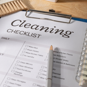Develop a checklist of core tasks: Each room will have its own unique cleaning requirements, but the following is a general checklist that’s applicable to every room. Using it will help you stay organized as you clean each space, ensuring consistency: