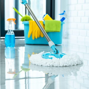 - Vacuum and/or sweep and mop the floors